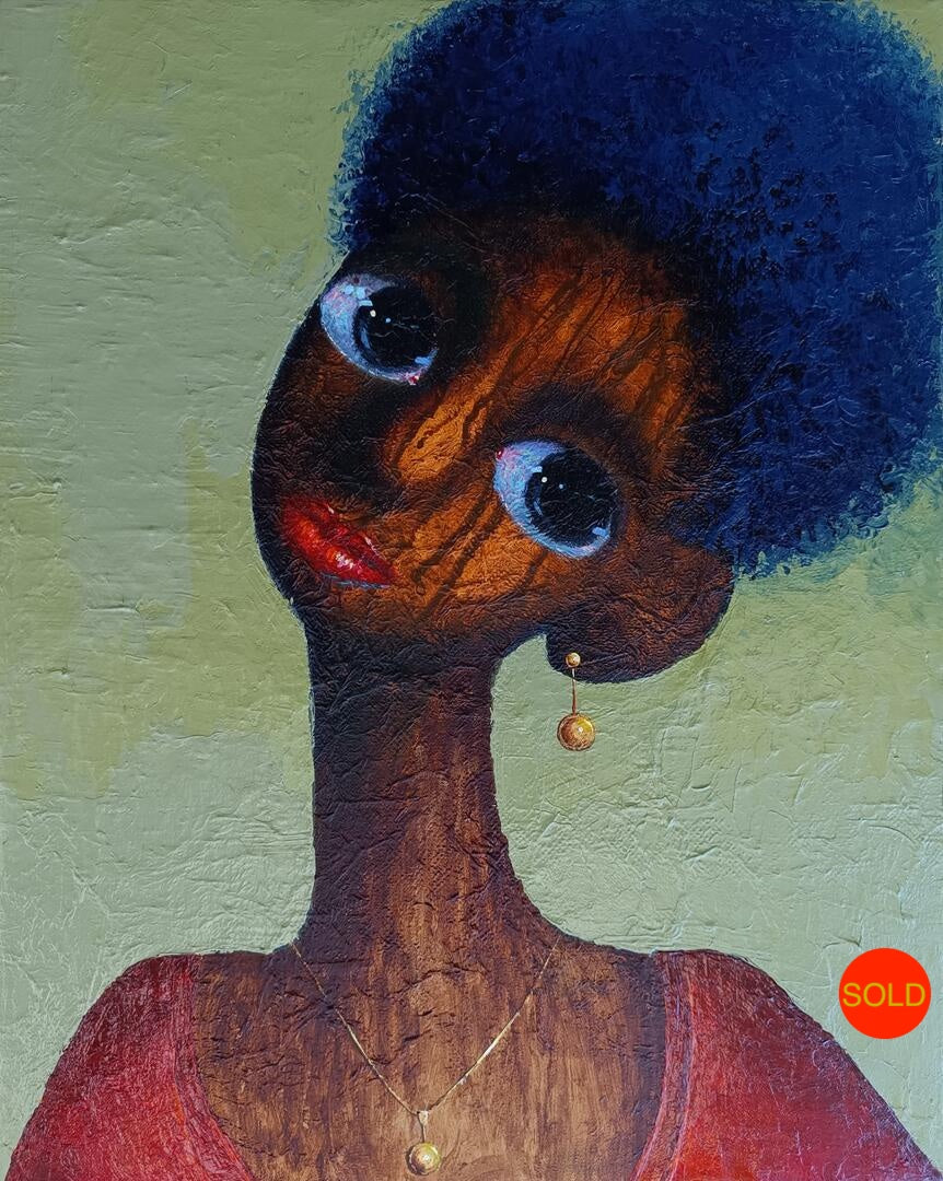 This painting captures the essence of introspection and self-reflection. The subject's exaggerated eyes and lone ear represent the presence of an inner observer within each of us — a silent witness to our thoughts, feelings, and personal growth. It invites viewers to embrace self-awareness and mindfulness.